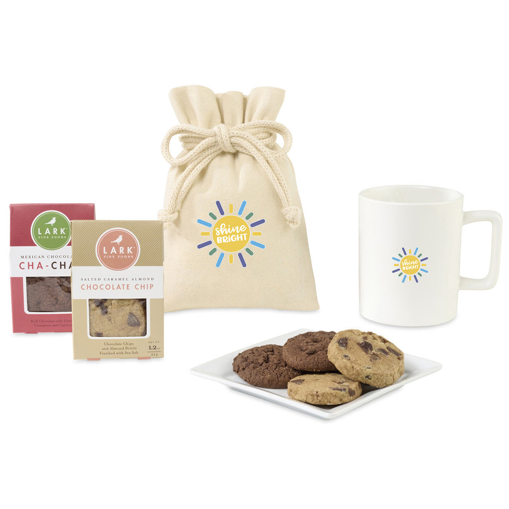• This set includes a ceramic mug and two deliciously different Lark cookies to brighten their day