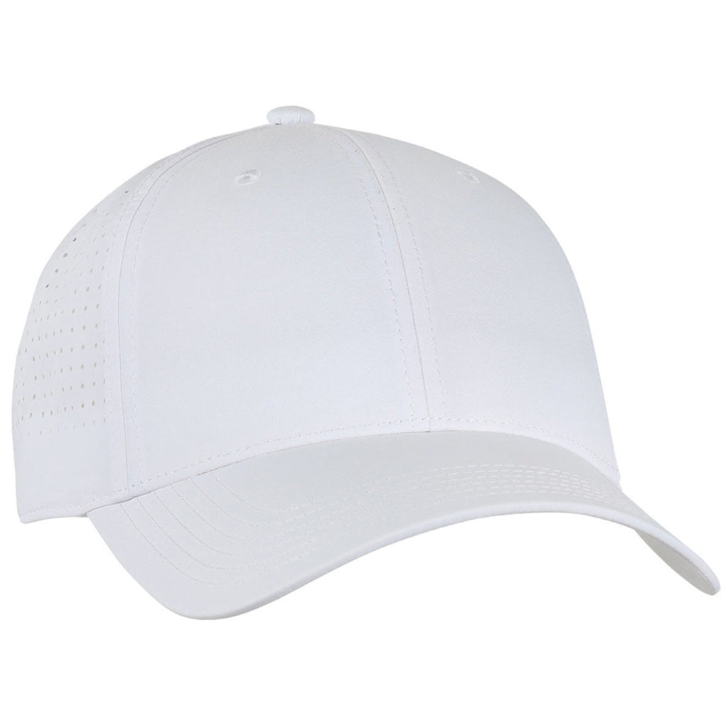 Create a corporate logo for the Ahead White Heather Brezo Performance Cap made of heathered perforated fabric with a silicone hook and loop closure. This trendy cap is structured with a mid-fit and pre-curved visor to keep you cool and protected whether you are chilling in the stands, playing your favorite sport, or just relaxing while running errands.The minimum order for this product is 25 pieces.