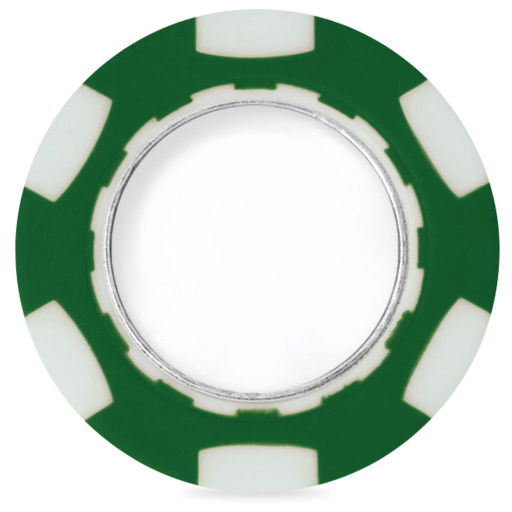 Ahead Green/White Poker Chip with Ball Marker with a corporate logo is ideal for tournament play, as the magnetic ball marker sits in the center of the chip. Mark your ball position without interfering with the putting line of others. Get your logo seen each time this marker is used on the course. Ideal for a pro shop impulse buy.The minimum order for this product is 100 pieces.