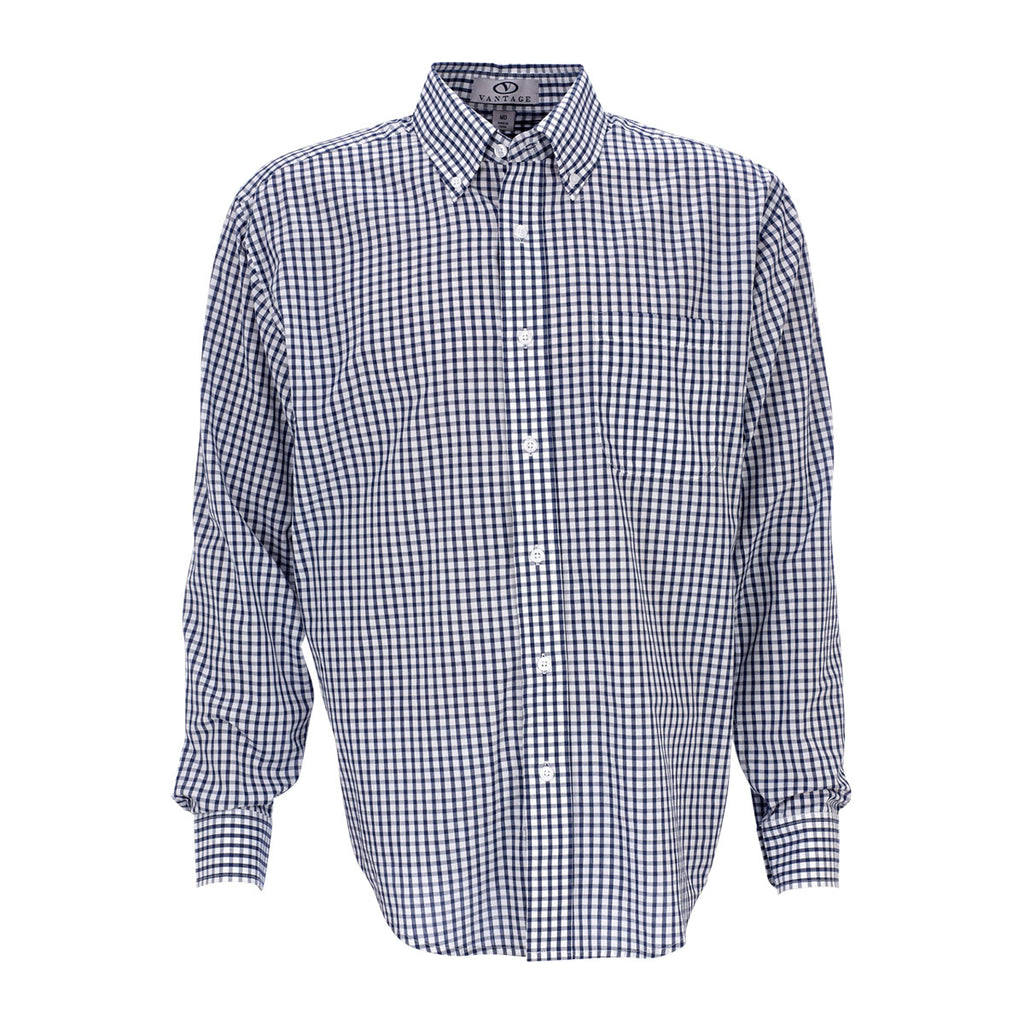 Vantage Men's Navy/White Easy-Care Gingham Check Shirt