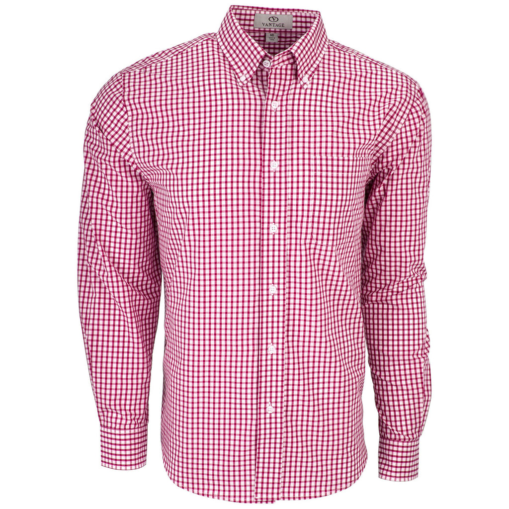 Vantage Men's Sports Red/White Easy-Care Gingham Check Shirt
