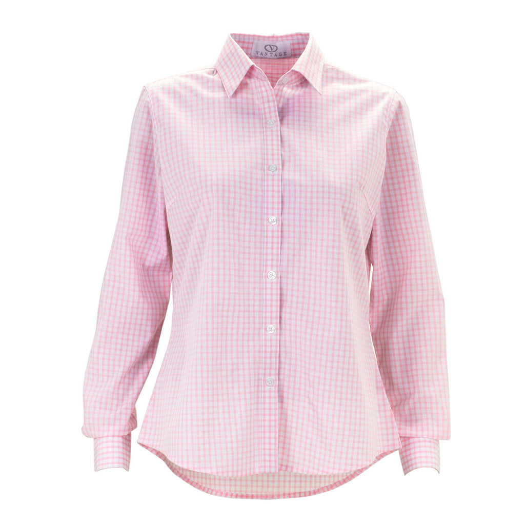 Vantage Women's Pink/White Easy-Care Gingham Check Shirt