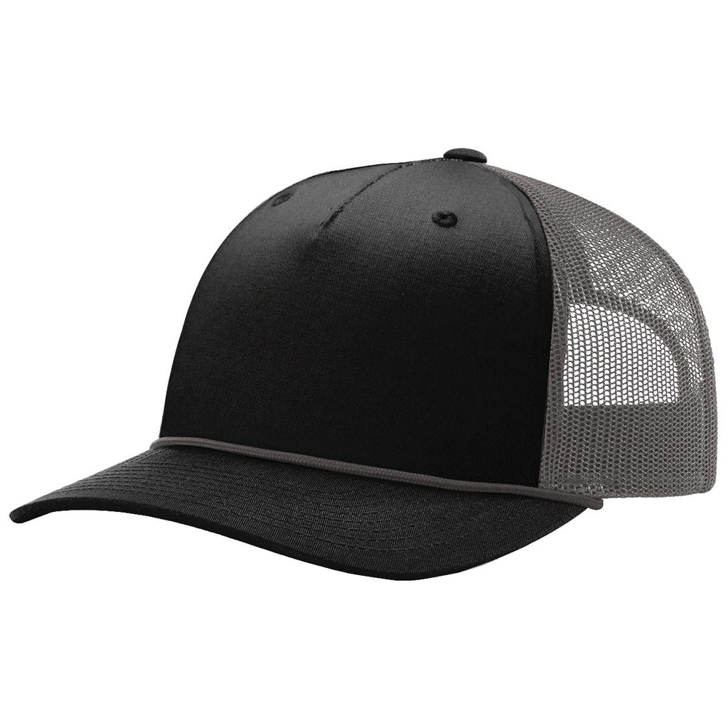 Richardson Black/Charcoal/Charcoal Split Five Panel Trucker Hat with Rope