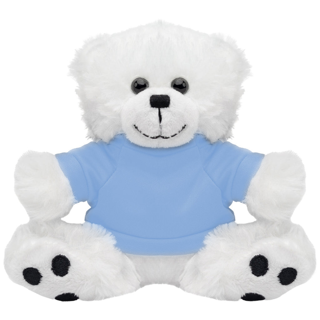 Hit 8 1/2" Big Paw White Bear with Light Blue T-ShirtThe minimum order for this product is 50 pieces.