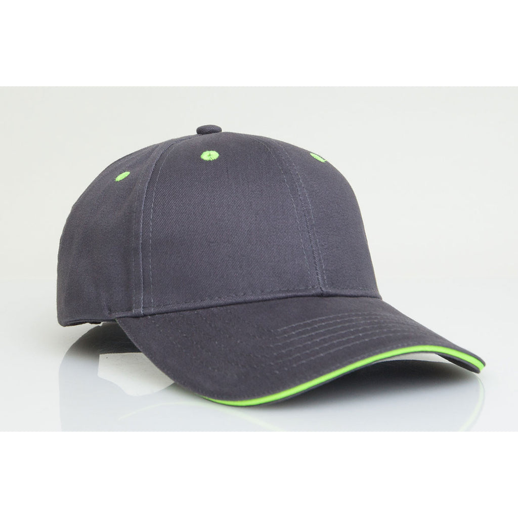 "Take me out to the ball game" just got fashionable, with the introduction of the logoed Pacific Headwear Graphite/Neon Yellow Velcro Adjustable Brushed Twill Cap With Sandwich Visor. The stylish versatile headwear presents a proprietary "All Sport" profile that keeps you focused for corporate sponsored softball league games. Adjust the sandwich visor cap to produce the optimal fit for every type of sporting event. Enjoy the supreme softness of the 100% brushed cotton fabric that endures the stress of frequent use. Add a custom logo that potential customers immediately recognize as your company emblem. Corporate logoed apparel sells your customer first image in the community.Highlights