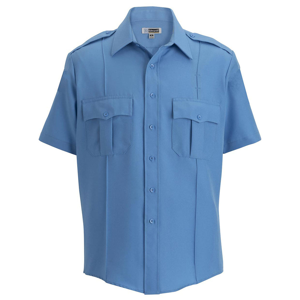Edwards Medium Blue Unisex Security Shirt with corporate logo will ensure your security detail is easily recognized. The straightforward short-sleeve button down with dual chest pockets and badge tab is ideal for those working at concerts, special events, or even directing traffic. Place an order before your next event.Highlights