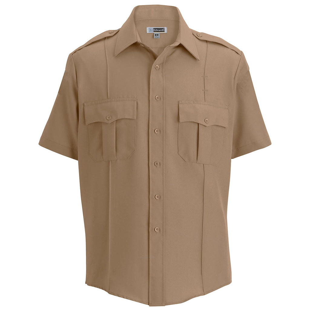 Edwards Silver Tan Unisex Security Shirt with corporate logo will ensure your security detail is easily recognized. The straightforward short-sleeve button down with dual chest pockets and badge tab is ideal for those working at concerts, special events, or even directing traffic. Place an order before your next event.Highlights