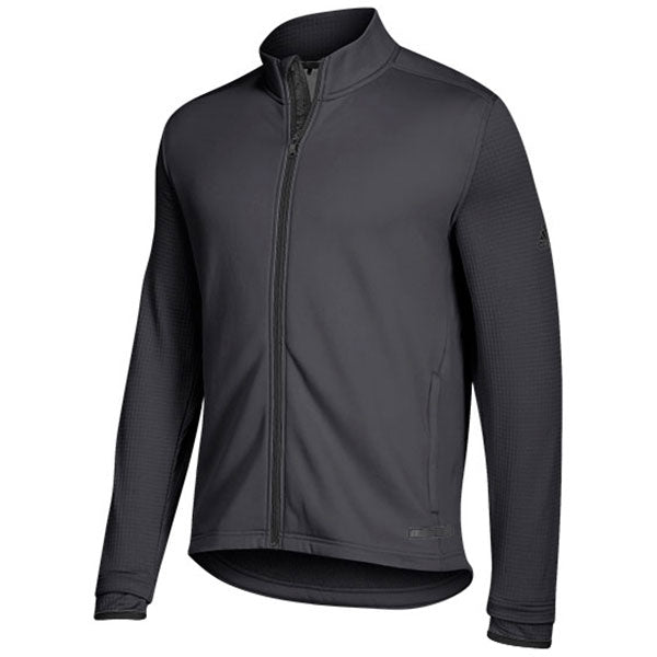 adidas Men's Black Climaheat Full Zip Hybrid with custom design creates an updated look that will be an instant favorite. Created from a polyester and elastane blend with a brushed back body, this full zip hybrid is a definite must have. Whether you want to get noticed at the next athletic related event or just want a jacket to show off going to and from the office, this custom embroidered jacket will keep you warm in chilly weather. Offer these hybrids as high end corporate gifts with waffleknit sleeves and zippered pockets for easy wear. Place an order for one or for many to make a real statement.