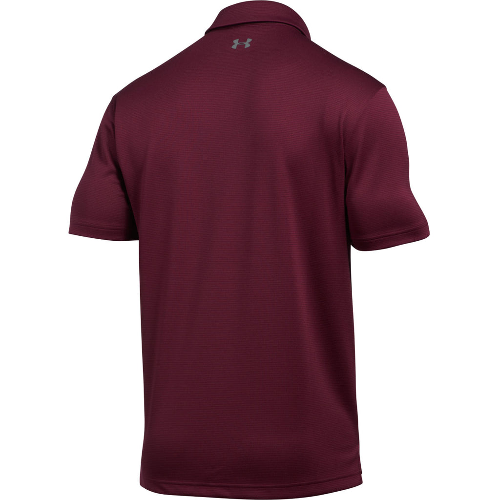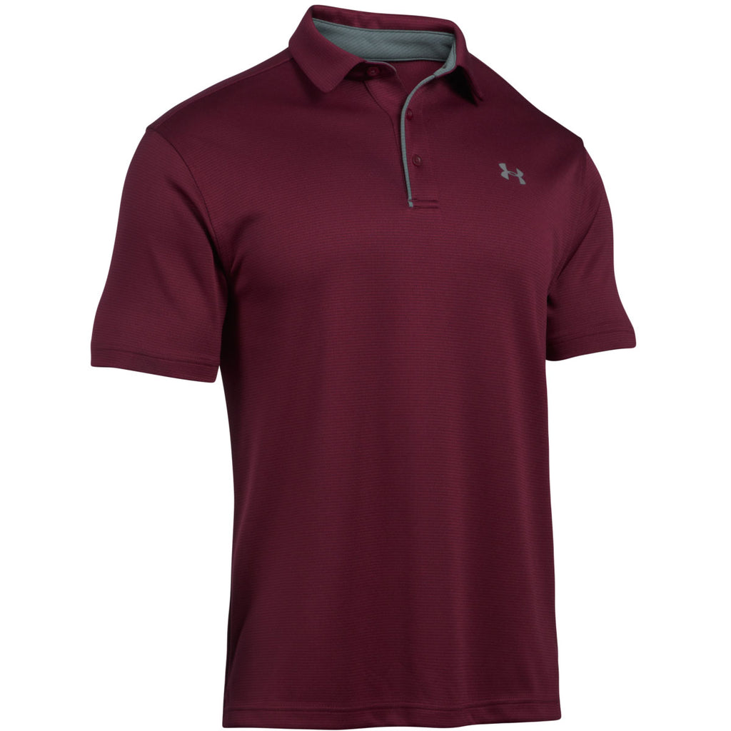 Meet your new favorite corporate polos, the Under Armour Men's Maroon/Graphite Tech Polo. These burgundy red and grey UA men's polos are made from sweat wicking polyester fabric and feature a moisture transport system for quick drying, so you'll stay cool under the collar everywhere from the golf course to the boardroom. You can even add your custom embroidered or printed company logo to any of these custom polo shirts at no added fee. It's a match made in co-branding heaven.
