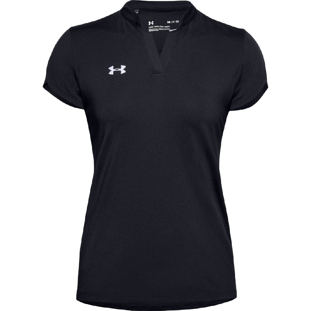Create a great custom look with the Under Armour Women's Black Team Performance Polo. A perfect polo is a must have in both the athletic and professional realms. Add embroidery to this polo to stand out in a crowd or create custom gifts for those dearest to you. A company logo makes these ideal employee uniforms and a custom logo helps to create professional looking team gear for athletes that need to showcase more than their talents. The smooth, anti-pick material is soft with moisture wicking, 4-way stretch, and anti-odor technology. The loose fitting feminine shape has a V-neck for a bit of flair.