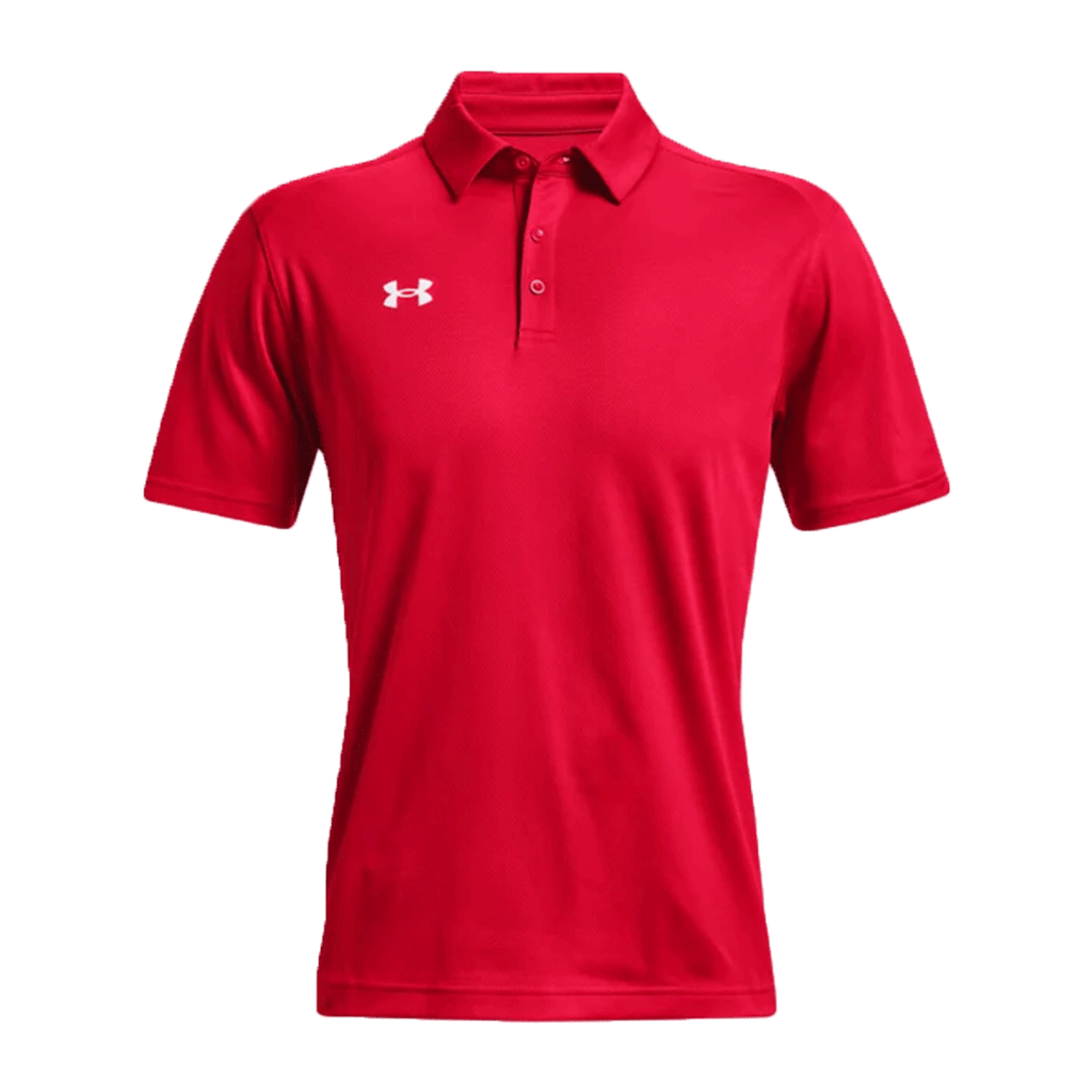 Add your business logo to the Under Armour Men's Red Tech Team Polo for a classic, athletic look the guys on your team will love to wear! With loose, textured fabric that breathes throughout the day, the corporate UA Tech polo for men helps deliver a comfortable feel with a clean-cut style. With your business logo embroidered clearly on the front, custom men's Under Armour polos can help your crew look united and ready for whatever comes next!