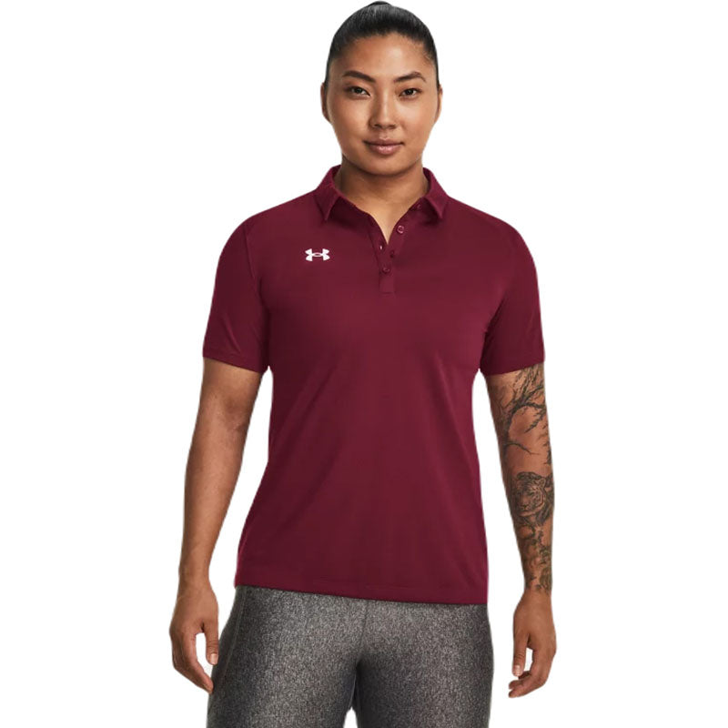 Add your company logo to the Under Armour Women's Cardinal/White Tech Team Polo for a classic corporate apparel look the women on your team will love to wear! With loose, textured fabric that breathes throughout the day, the corporate UA Tech polo for women helps deliver a comfortable feel with a clean-cut style. With your business logo embroidered clearly on the front, custom Under Armour polos for women can help your crew look united and ready for the day!