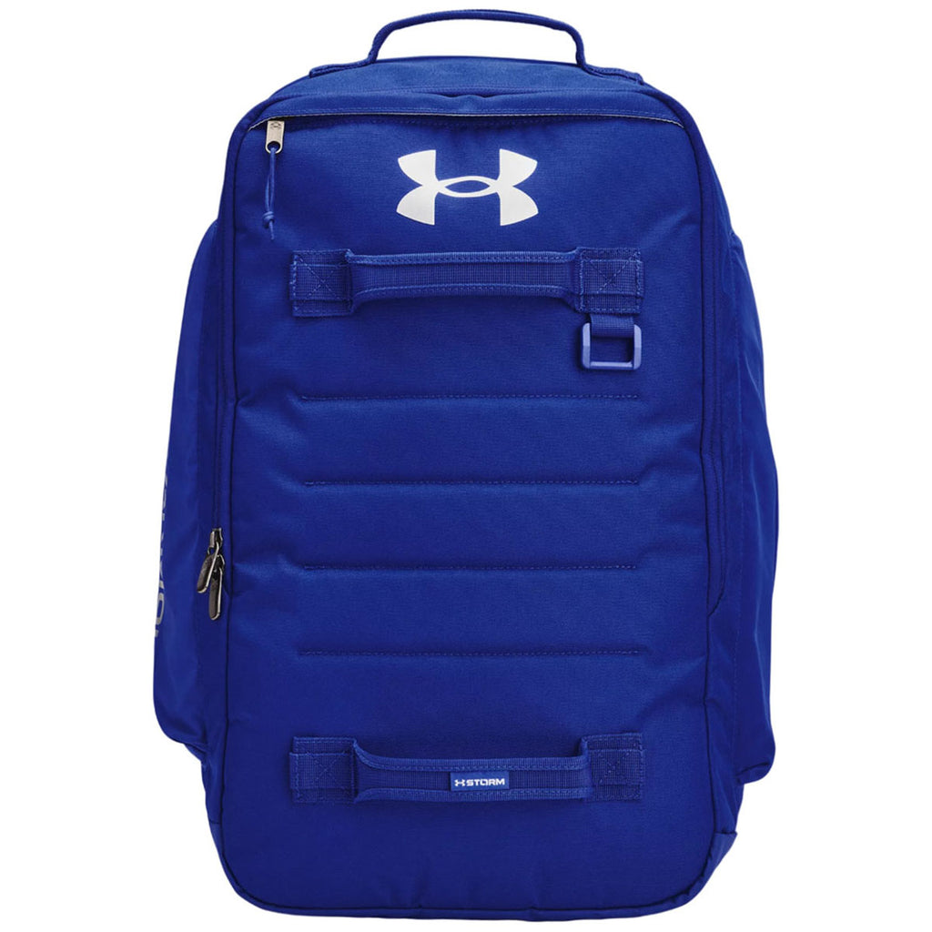 Create a custom Under Armour Royal/Royal/Metallic Silver Contain Backpack with embroidery for a bag that keeps athletes more organized. This bag is big enough to carry what you need with water-resistant technology, a lined 15-inch laptop sleeve, and organizational pockets. Grab and go with this backpack that can be taken to work, school, the gym and across the country.Highlights