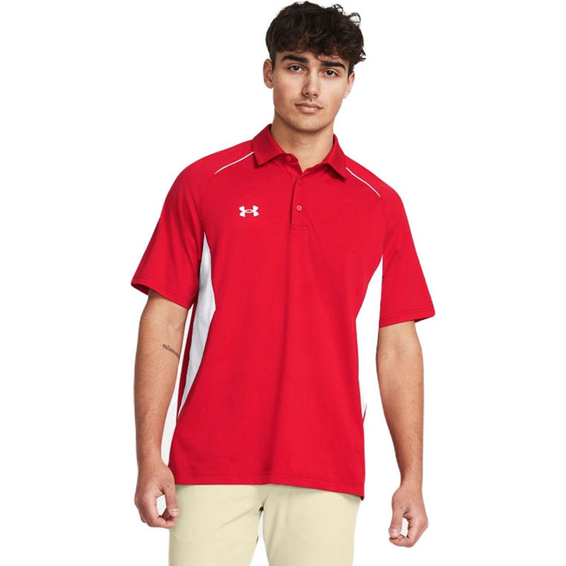 Under Armour Men's Red/White Title Polo with corporate or custom embroidery creates a classic, high-end look that can serve as a uniform or golf shirt that all can love. The short-sleeved polo is sleek and versatile for daily wear as needed. Easily pair with a jacket, wear alone, or layer.Highlights