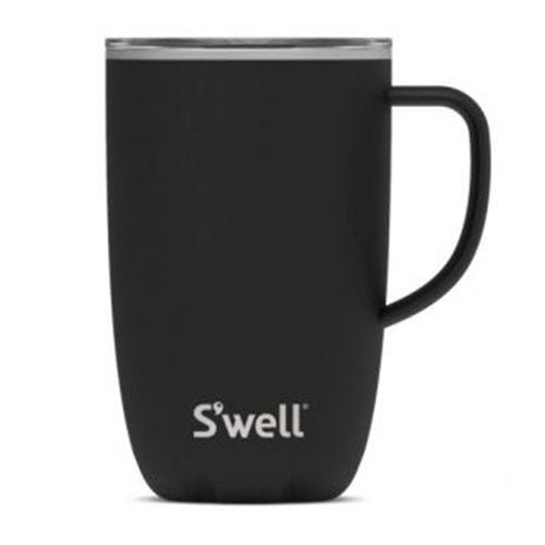 The custom S'well Onyx Mug 16 oz (with handle) is a fresh take on your everyday coffee mug. Its handle makes this custom 16 oz. tumbler easy to carry, especially on a busy, hands-full day. Its splash-resistant lid makes it easy to take to work without spilling. The logo-branded S'well Onyx 16 oz. Mug gives you the comfort of a classic mug handle with the convenience of a custom tumbler. We'll add your company's logo so you can gift this unique custom S'well Mug to the coffee and tea lovers in your office!