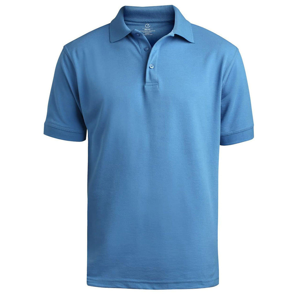 Edwards Men's Marina Blue Soft Touch Pique Polo with embroidery is the ideal option as employee apparel for many industries. The short sleeve polyester cotton blend is made to be worn daily and cleaned by industrial laundry or an at home machine. Add a company logo to show affiliation on the shrink resistant fabric that is also fade and wrinkle resistant. An extended tail offers extra coverage so bending and stretching during work hours is not a concern. Try a custom logo to create a polo that can work as team gear, show team support, or just build your own customized wardrobe.