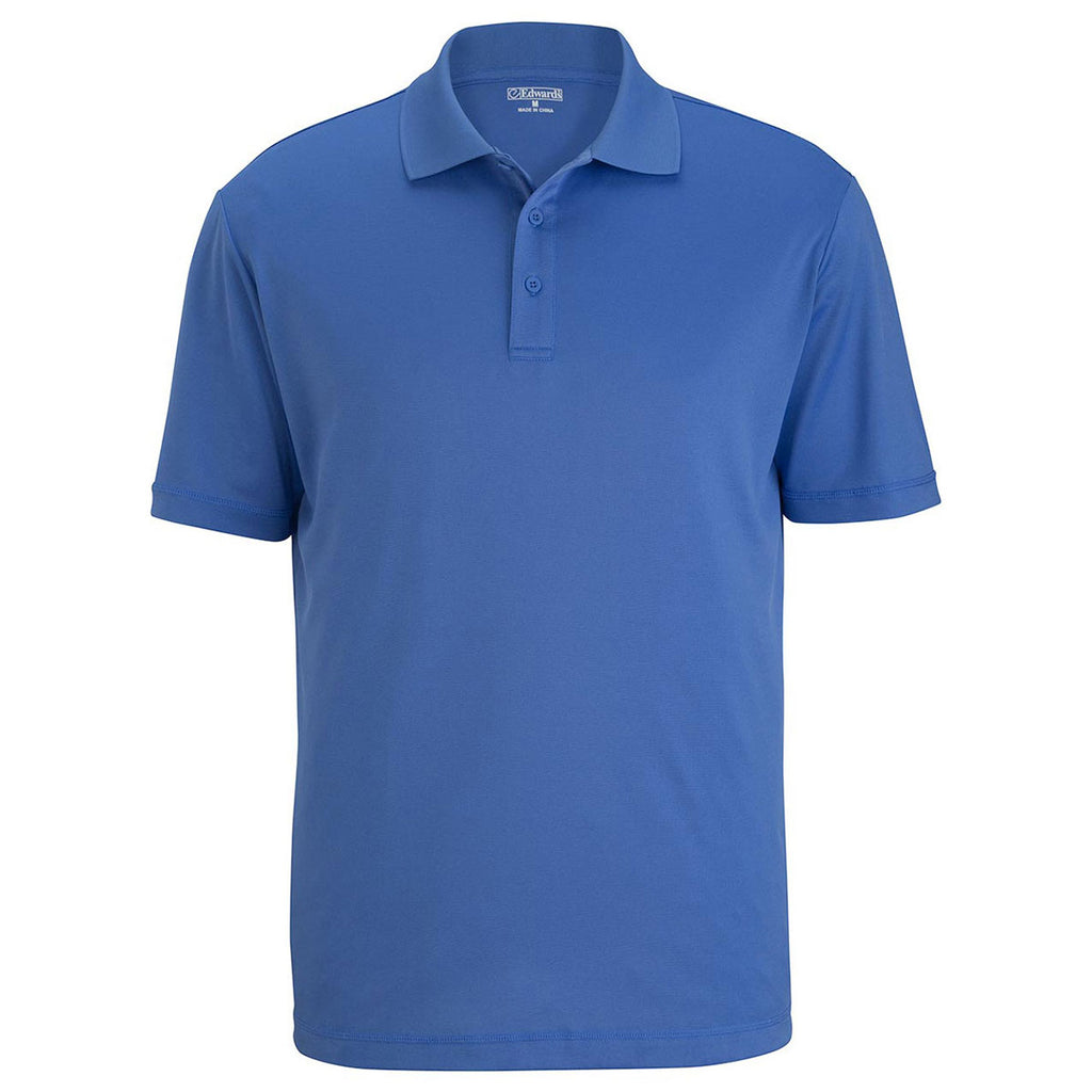 Your company logo will get noticed on the Edwards Men's French Blue Mini-Pique Snag-Proof Polo when used as employee apparel. This short sleeve polo is comfortable year-round whether worn alone or layered with other company gear. Made of 100% polyester mini-pique in a lightweight design, the polo is moisture wicking and machine washable with straight hemmed bottom and sleeves. Consider a custom logo to create a fun option for a cause or to show team support with a polo that is fashionable, yet functional.