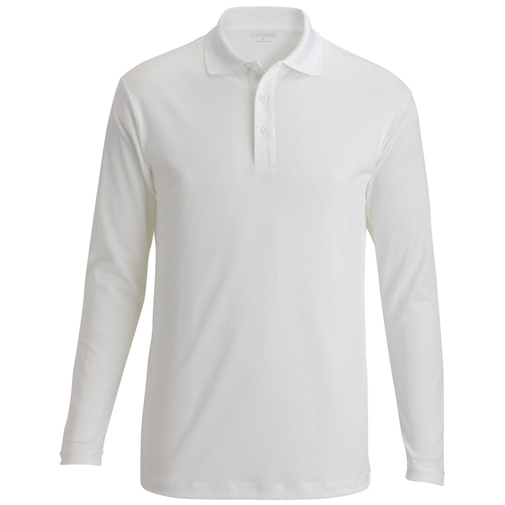 Edwards Men's White Mini Pique Snag Proof Polo with custom embroidery is a cost-effective option to build your wardrobe or brand. The moisture-wicking polo with tag-less collar and hemmed bottom and cuffs are great indoors and out with a slightly longer body for coverage. Place an order right away.