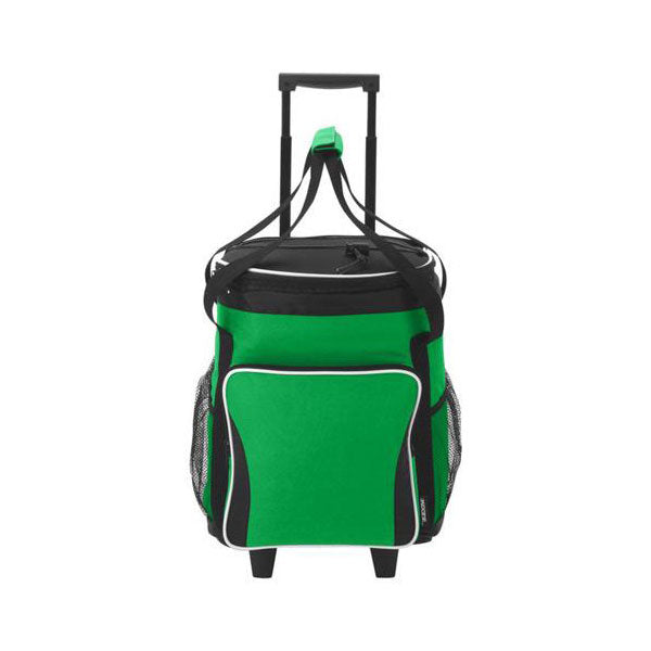 Help your company's customers and employees whoop it up on game day events with this custom-logoed Koozie Green Tailgate Rolling Kooler. Whether its tailgate outside the stadium or a party at home, this rolling cooler will keep food and drinks cool thanks to its heat-sealed PEVA liner. Featuring a retractable handle, roomy main compartment and extra pockets, this cooler is ideal for picnics or corporate meet-ups.