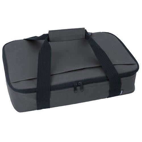 The annual company picnic is right around the corner. You have decided to make the casserole that your co-workers love. The problem is not delivering a sumptuous meal, but delivering a sumptuous meal hot out of the storage case. Koozie has created the Koozie Charcoal Hot and Cold Kooler to keep your casserole piping hot throughout its journey. Fit a standard size pan inside of the insulated storage unit for convenient transport of both hot and cold foods. The front slip pocket allows you to bring along accessories such as a spatula and knives. Attach your corporate logo to the cooler for increasing awareness of your brand at outdoor social events.