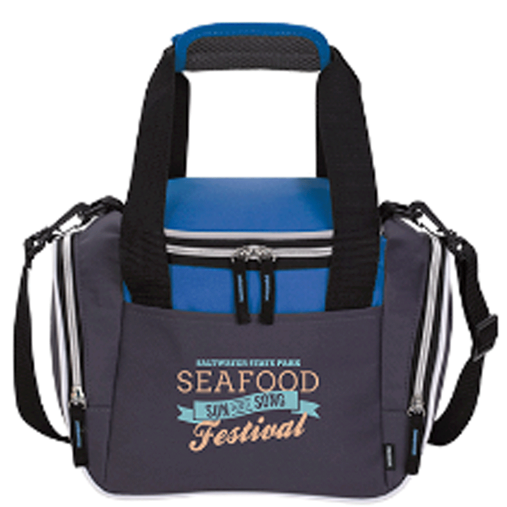 Going out for lunch everyday takes a toll on the monthly budget. This is one of the reasons why Koozie has designed the Koozie Blue Lunch Duffel Kooler. The stylish, lightweight lunch cooler features several zippered pockets to help separate your chip bags from plastic wrapped sandwiches. Enjoy less stress on the back and shoulders by adjusting the comfortable padded shoulder strap. The heat-sealed PEVA liner ensures everything you store for lunch remains fresh until the clock strikes twelve. Add a custom logo on the side of the cooler for promoting your company everywhere you go.