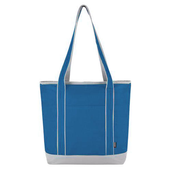 Pack your lunch and late afternoon snacks inside of the Koozie Royal Lunch Time Kooler Tote. Trips to a nearby park for an hour away from work have become much easier to take because of the large main zippered compartment that keeps all of your favorite foods fresh. Bring the rugged tote to the outdoor market for convenient storage of fresh produce. The heat-sealed PEVA liner maintains the flavor integrity of fresh fish and poultry. Place your smartphone inside of the front slip pocket to take important business calls during noontime breaks. Increase recognition of your company by attaching a custom logo to the side of the tote.