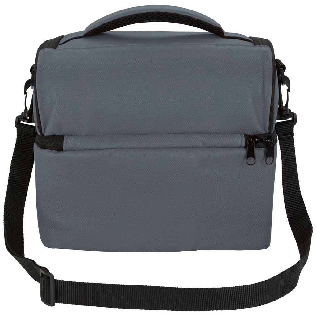Enjoy a custom Koozie Grey Rogue Lunch Kooler with heat transfer design each day or as an item available in your store. The well designed lunch Kooler has two sections. The lower section is larger and great storage for lunch food items and the top rounded section with a separate zippered opening is great for a drink or heavier items. A clip on strap makes it easy to carry this bag on the shoulder and a top carry handle means you can grab and go. The insulated interior keeps food at a safe temperature until lunchtime. Add a company logo to the front of the lunch Kooler to use as an event giveaway or employee gift that can be used each day. Place an order now for these versatile lunch bags.
