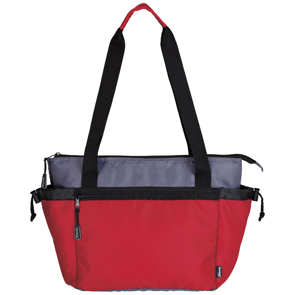Make your day easier with a custom Koozie Red Kamp Kooler Tote. This versatile tote is great for day trips, camping trips, long car rides, and packing extra snacks for the office. Add a company logo to offer these as employee gifts or as a way to create a new employee welcome package full of fun items and snack foods. Try out a custom logo to show support for a favorite team or organization as you attend games or family events. The large zippered main compartment with a heat sealed PEVA liner that keeps food warm or, with an ice pack, cool for a few hours. A front zippered pocket and side water bottle pockets with drawstring closure add to the available storage space. Order yours today.
