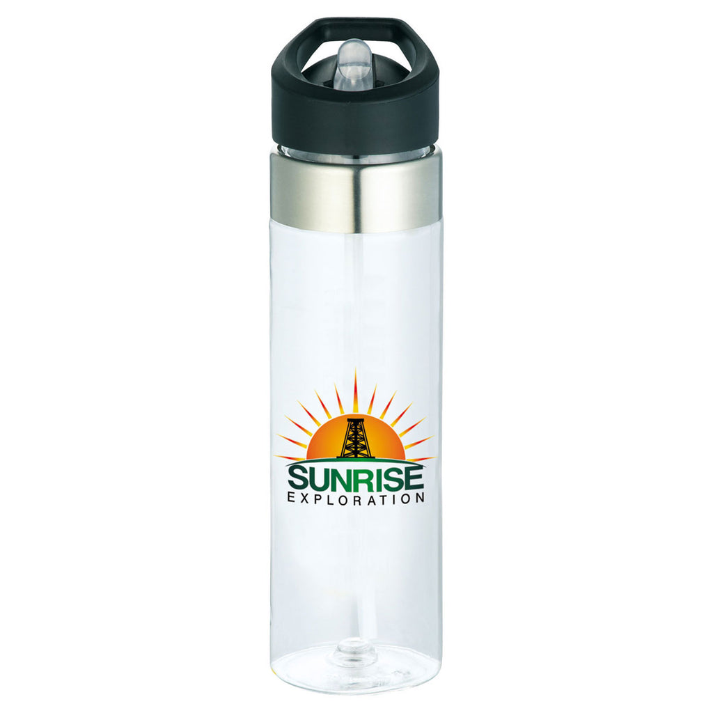 The distinct layout of the Leed's Clear Kensington BPA Free Tritan Sport Bottle 20oz includes a firm body with a stainless steel accent at the top part. The lid also keeps what's inside the bottle secure. Add a company logo to the surface to make this the perfect gift for an employee wellness program or as a giveaway at a recruiting event.