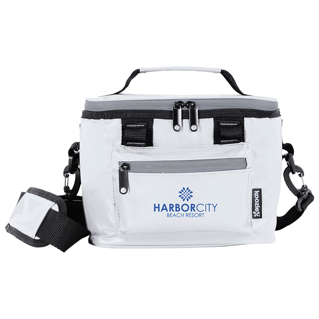 Create a corporate logo for the Koozie White Olympus 6-Can Cooler to give to new hires or sell at organized events. These coolers are made of water-resistant tarpaulin and are perfect for six cans of your favorite drink or lunch on the go. Go enjoy a picnic in the park, take snacks to the big game, or enjoy a road trip. Order today.The minimum order for this product is 24 pieces.