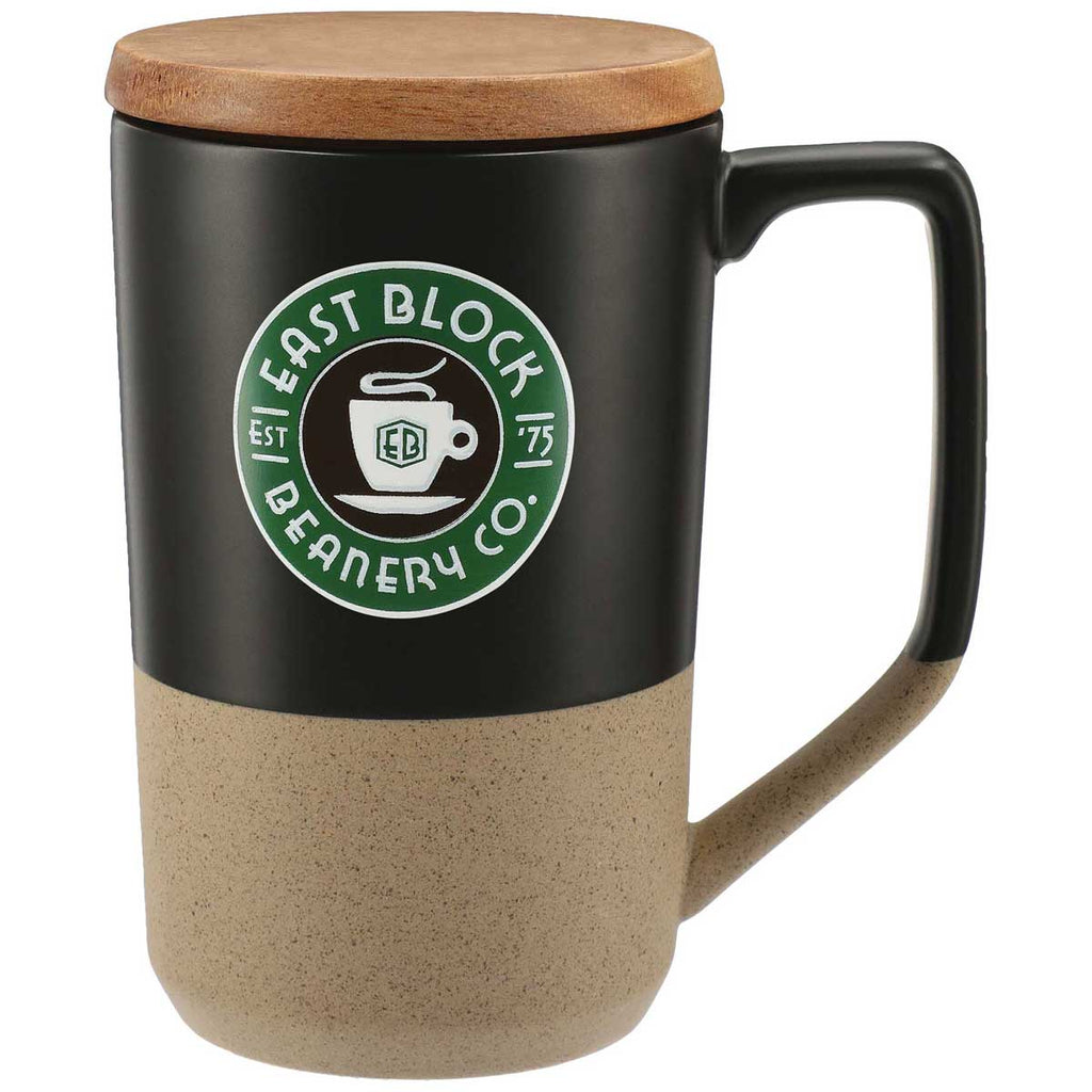 Leed's Black Tahoe Tea & Coffee 16oz Ceramic Mug with Wood Lid