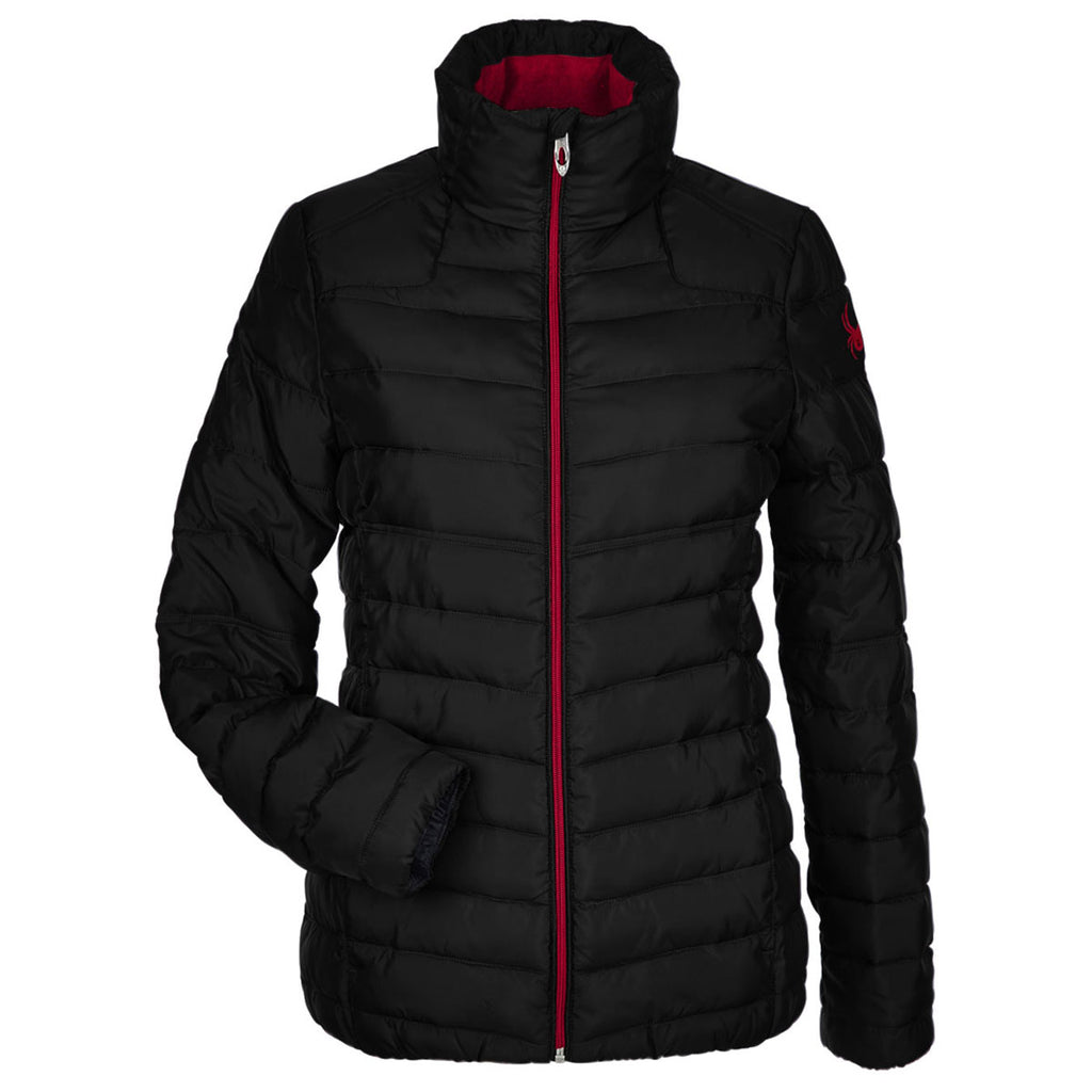 Headed out for vacation or in need of workwear, Spyder Women's Black/Red Supreme Puffer jacket is the perfect choice for every need. A corporate logo can be embroidered to add both advertisement and flair on the polyester nail head weave that will look great on anyone. Simple additions such as princess seams and zippered handwarmer pockets make this jacket an over the top design that will be coveted by all. Stay warm and stay focused on work whether offering ski lessons, landscaping, or even just heading to a business lunch. The possibilities are endless. Choose your company logo design and place an order today.