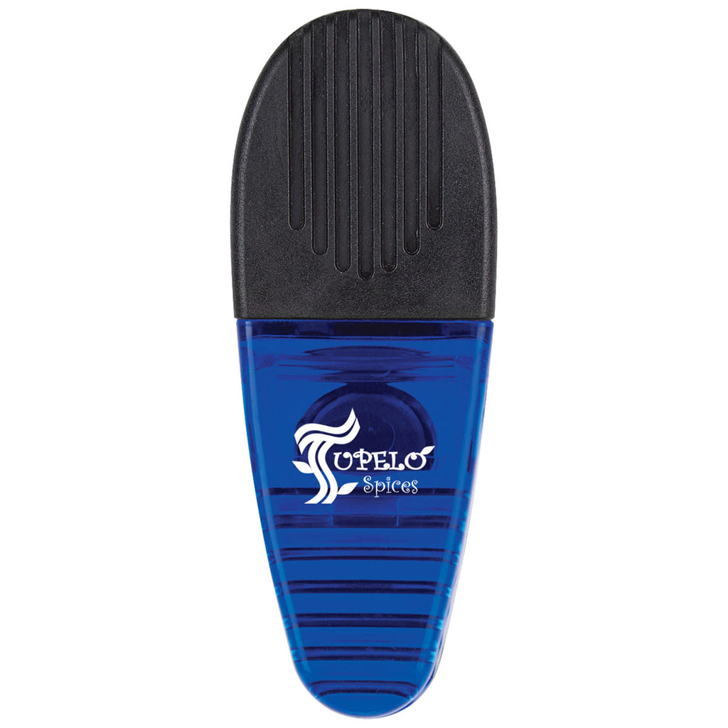Hit Translucent Blue/Black Alligator Clip with a printed corporate logo is an easy way to share your brand on a functional item. Whether you need a quick giveaway for a trade show that is easy to carry or want to create a functional basket for new clients, this magnetic alligator clip is the way to go. Pop it on the fridge to hold notes, artwork, and more.