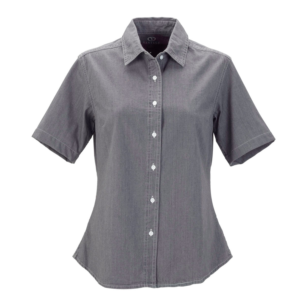 When Old Man Winter decides to call it a season, put on the company logoed Vantage Women's Grey Short-Sleeve Hudson Denim Shirt to let everyone know about your fine taste in fashion. The enzyme-washed denim shirt presents a laid back appearance that helps lower tension at the office. Wash and dry the durable cotton shirt multiple times and enjoy the same high end denim look. Smooth cotton always leaves your skin feeling fresh, even during the coldest months of the year. You can wear a long sleeve layering garment underneath the short sleeve denim shirt. Attach your corporate logo to gain more exposure for your company.Corresponding Men's Style: Vantage Men's Grey Short-Sleeve Hudson Denim Shirt