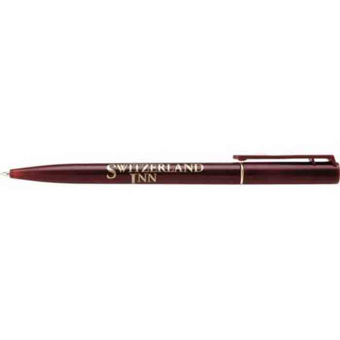 The unique design of the twist action retractable ballpoint Hub Pens Burgundy Valet Pen ensures you never have to spend time trying to force the tip out from inside of the rugged exterior. Neither constant strong impacts nor prolonged exposure to moisture diminish the performance of the long lasting pen. Even distribution of rich black ink prevents the types of ink bleeding that ruins notes taken over the course of several hours. The striking gold clip and accents on the barrel create an elegant design that surpasses the designs of ordinary pens. Attach your corporate logo to reach more customer prospects.