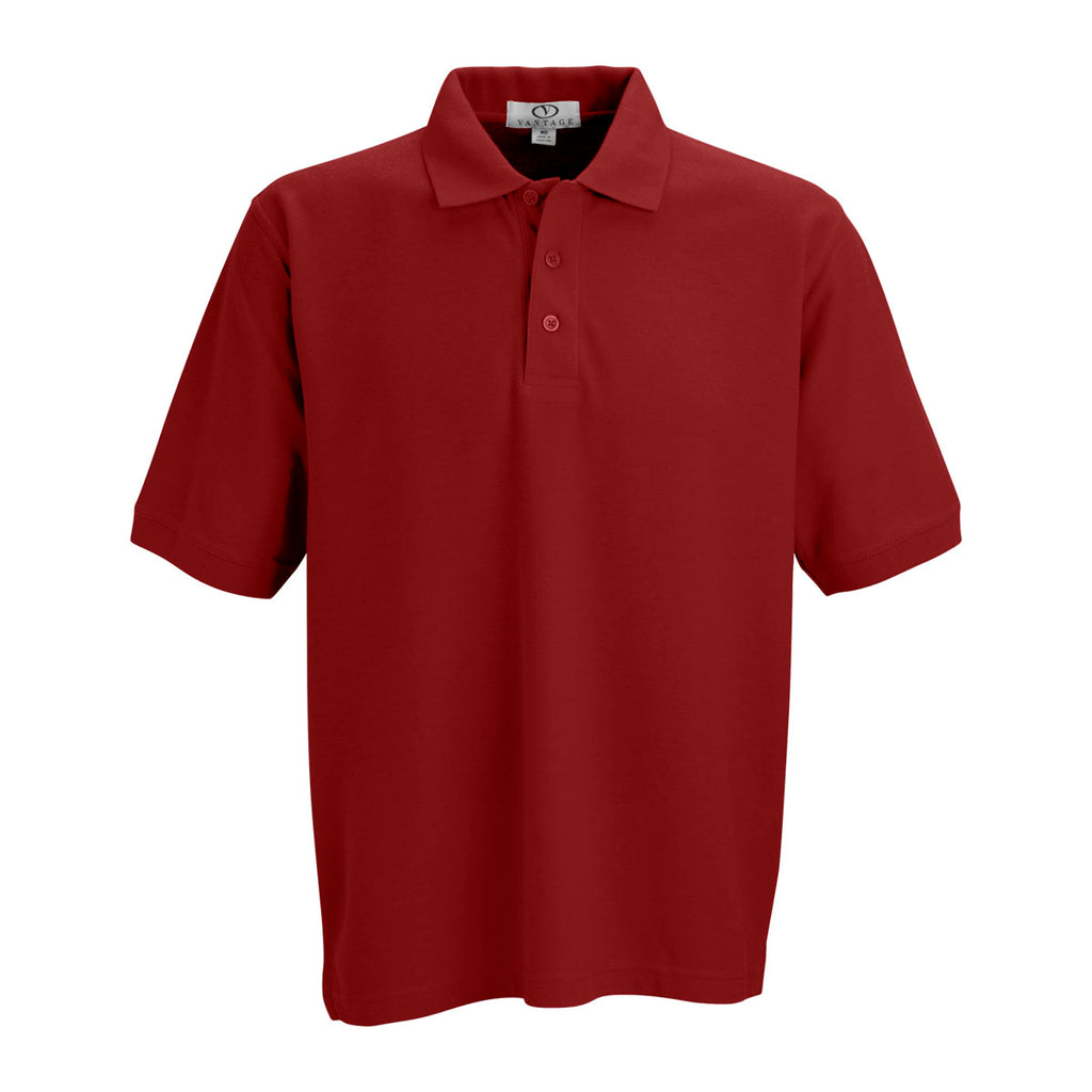 Vantage Men's Crimson Soft-Blend Double-Tuck Pique Polo