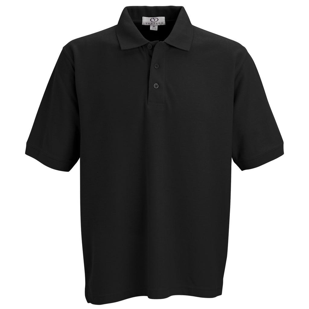 Vantage Men's Black Soft-Blend Double-Tuck Pique Polo