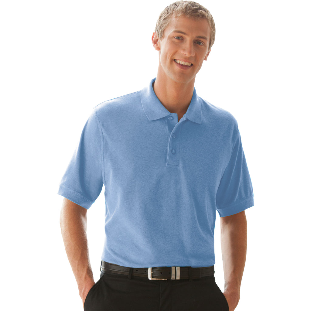 Vantage Men's Carolina Blue Soft-Blend Double-Tuck Pique Polo with a custom logo will turn heads. The double-tuck pique body with solid trim has double-needle top-stitching for a polished look. Great for golf, as a uniform, or as a promotional item for special events. Place your order today before these sell out.