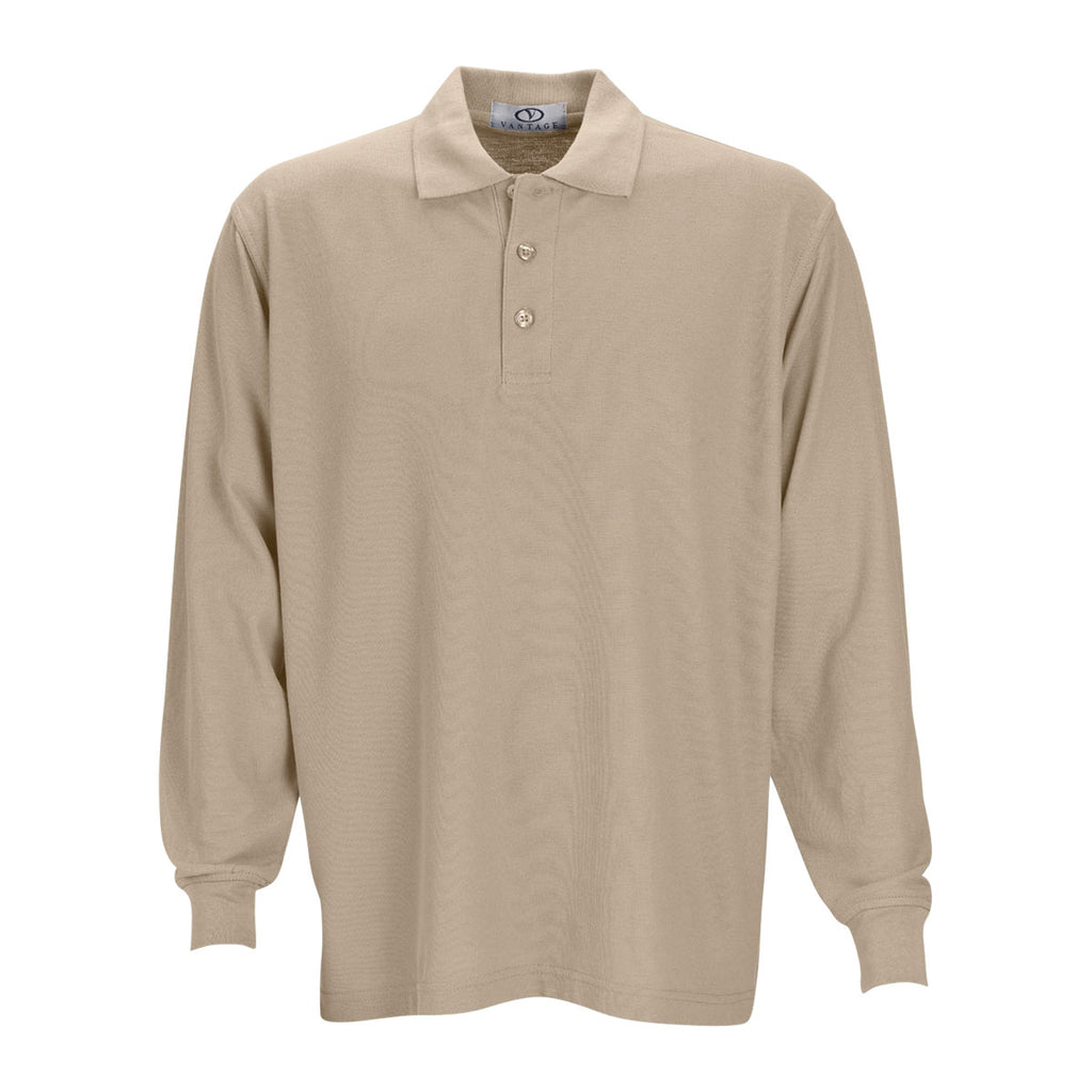 Vantage Men's Stone Long Sleeve Soft-Blend Double-Tuck Pique Polo