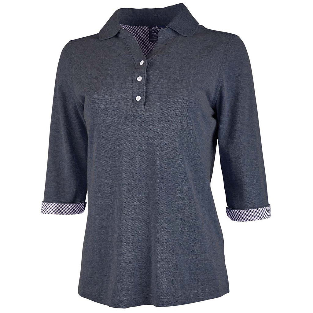 • Eye-catching gingham trim at the inside neck, cuff and hem adds a subtle touch of style