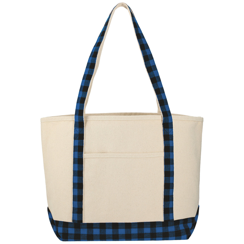 Leeds Blue/Black Buffalo Plaid 18oz Cotton Boat Tote