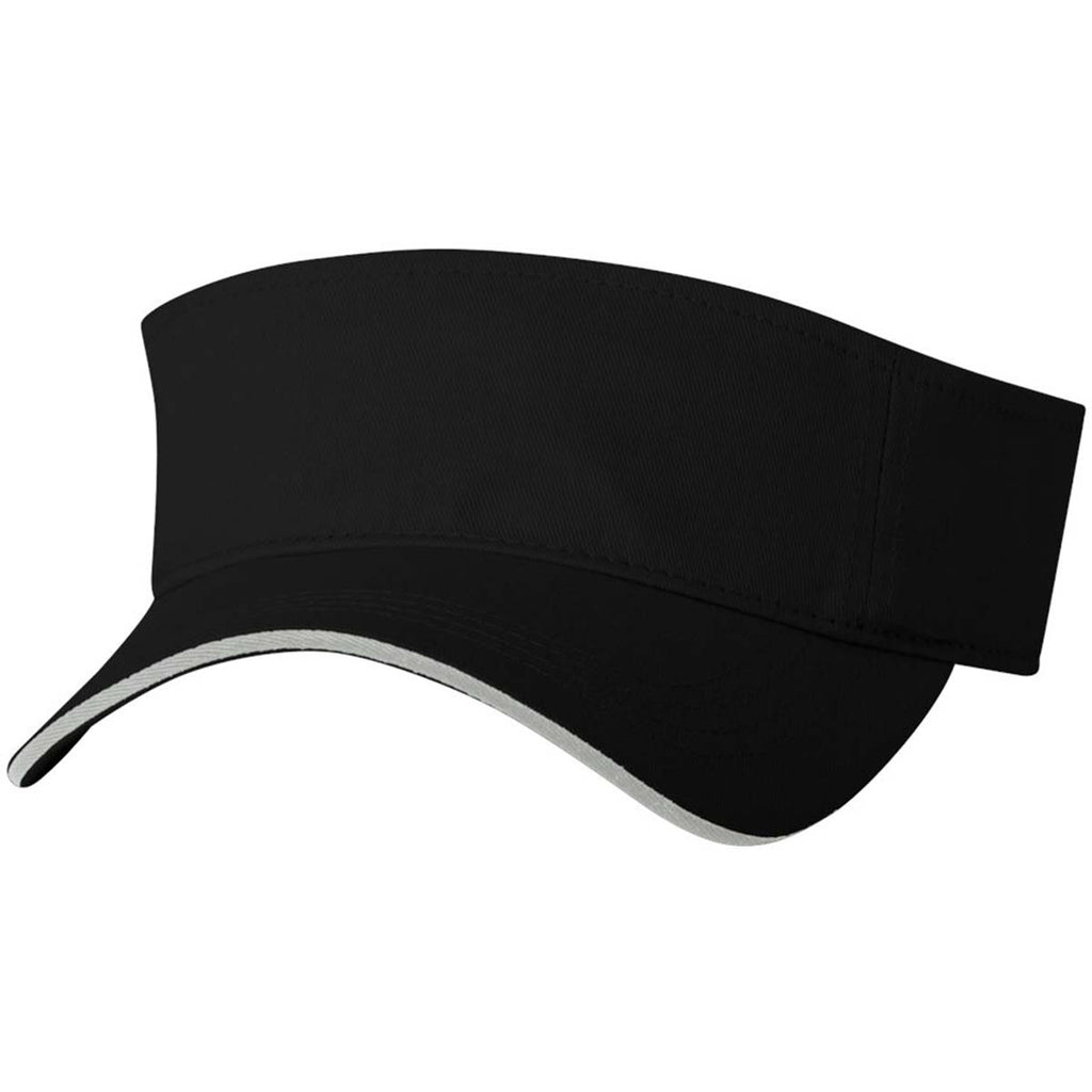 Look great and stay cool with a custom embroidered Sportsman Black/White Sandwich Visor. Made of 100% cotton twill this visor is ideal on the golf course or as you are working behind the counter at the food court. Add a company logo to use these as part of employee apparel or to give as corporate gifts. Your custom logo will stand out against one of the nine color combinations with hook and loop closure for easy adjustment. Perfect as products for trade shows or recruiting events, these visors will be the topic of conversation with the crowd.Highlights