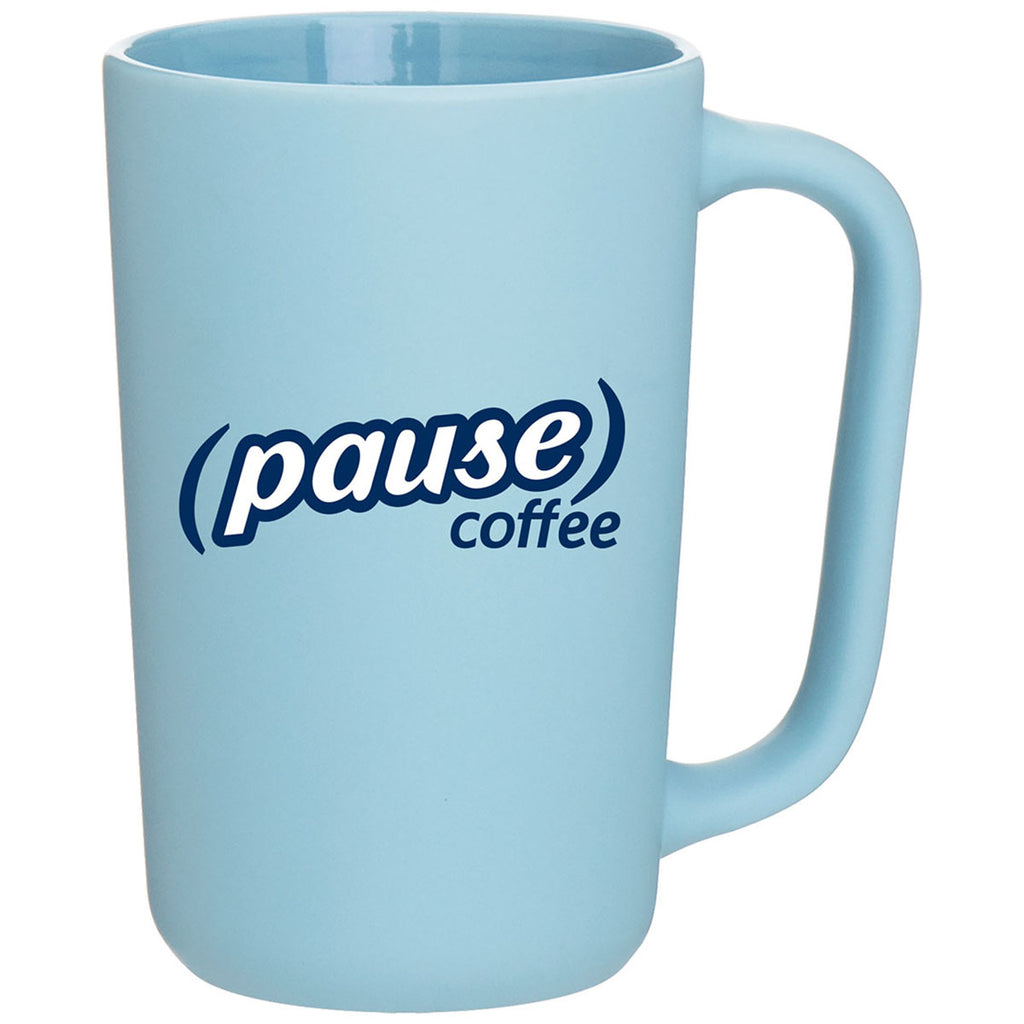 A simple, minimalist design makes the ETS Pacific Blue 14 oz Ceramic Ledge Mug the perfect way to show off your company's custom logo or design. Great for stocking up your breakroom or thanking employees for returning to the office, this ceramic mug pairs an attractive matte exterior with a glossy interior.