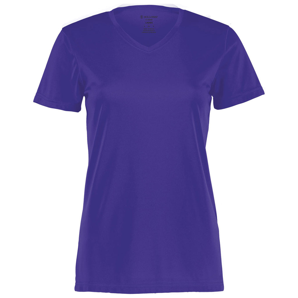 Custom screen print will pop on the Holloway Women's Purple Momentum Tee. This simple, straightforward tee is a must have as daily comfort wear that can be dressed up or down as needed. A basic tee is a wardrobe staple that can serve many purposes. Add a company logo to use as part of a uniform or a custom design to show affiliation with a group, club, or team. The feminine fitting tee is color secure, wicks moisture, and is odor resistant with V-neck collar and set-in sleeves. The possibilities are endless with this tee, so place your order right away.Corresponding Men's Style:Holloway Men's Purple Momentum Tee