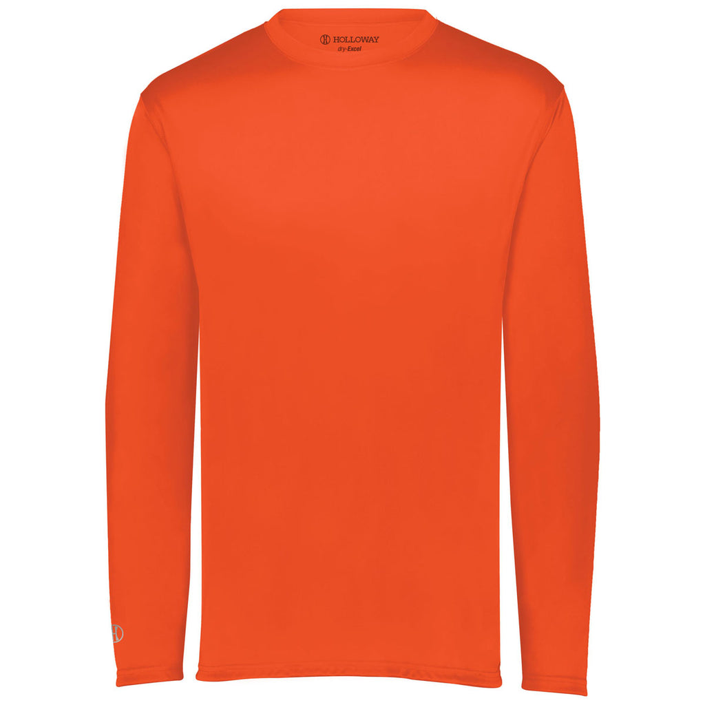 Choose custom screen print for the Holloway Men's Orange Momentum Long Sleeve Tee and create a highly versatile look for work or play. Add a company logo to the long sleeve tee as part of uniforms or general employee apparel that is moisture wicking, odor resistant, and tagless. The vibrantly colored tees have built-in sun protection of 30+ UPF and can be worn alone or layered with ease. Perfect for enjoying the outdoors while hanging out or working out. Try a custom logo to wear on the golf course and easily transition to the club house while still looking great. Don't wait, place your order today.Corresponding Women's Style:Holloway Women's Orange Momentum Long Sleeve Tee