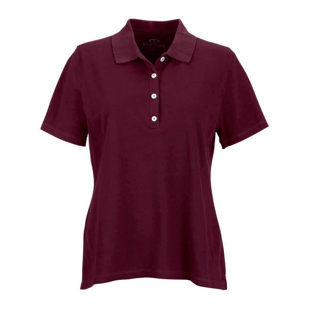 Enjoy the feel and appearance of the embroidered Vantage Women's Deep Maroon Perfect Polo, which uses fine gauge pique to create strong corporate apparel for all occasions. Extra length in the body offers you more fabric to tuck the shirt in for formal corporate events. A little spandex enhances your mobility to give you a polo that works well in several different sports settings. Wear the versatile polo with a pair of khakis and pair the chic company garment with dress slacks. Pure combed cotton feels super soft against the skin to ensure you feel fresh throughout the day. Add a custom logo and watch recognition of your products reach more customer prospects.Corresponding Men's Style: Vantage Men's Deep Maroon Perfect Polo