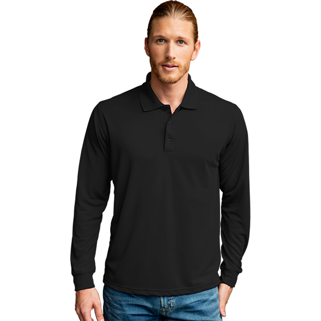 Vantage Men's Black Omega Long Sleeve Solid Mesh Tech Polo