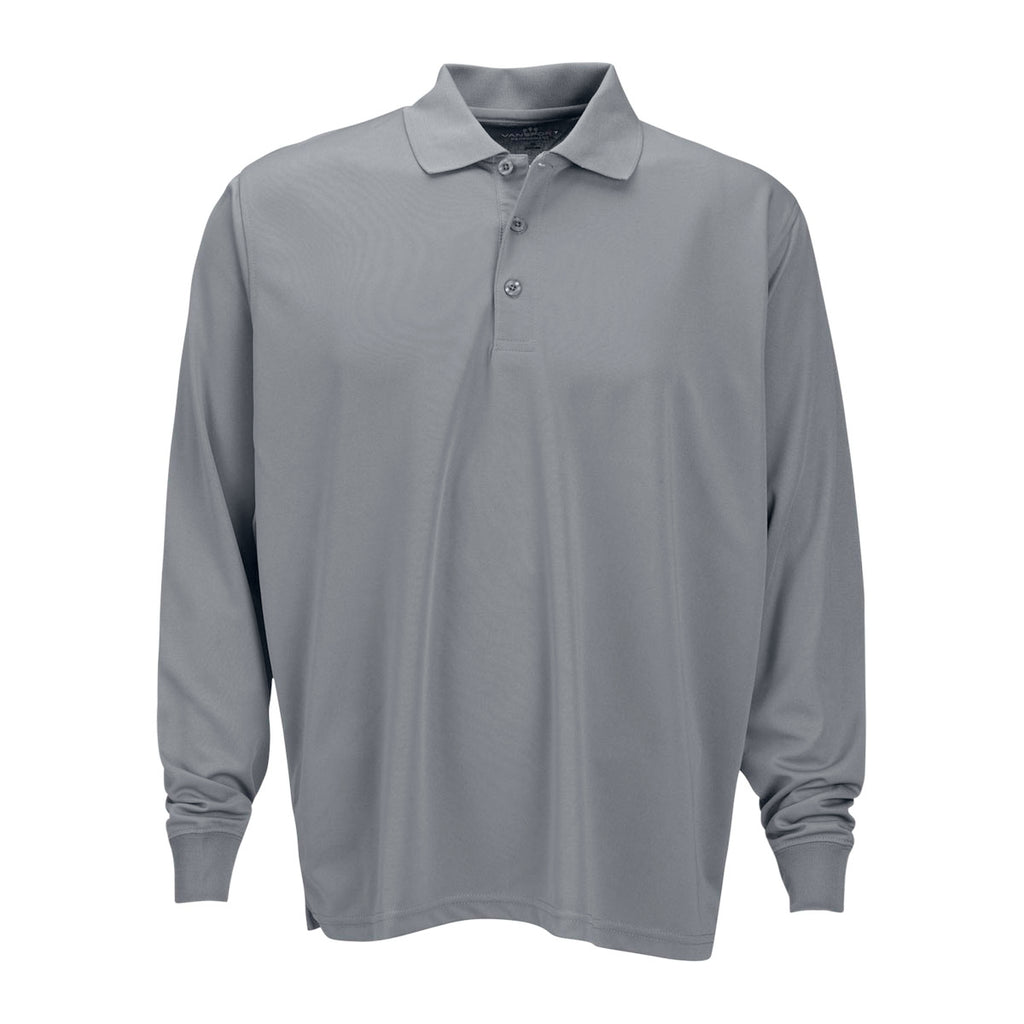 Vantage Men's Grey Omega Long Sleeve Solid Mesh Tech Polo