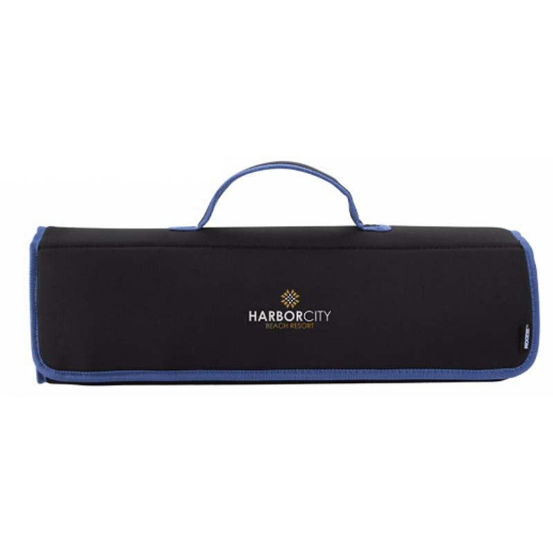 Print your custom logo on the Koozie Black/Blue Kamp 5-Piece BBQ Set and make it the perfect employee gift for your team - the personalized set can even be added to your company's new employee welcome gift. Step up every outdoor barbeque with the help of the stainless steel tools included in the set - the case where the tools are stored also features a clear pocket for seasonings, making the set your ideal barbeque buddy.