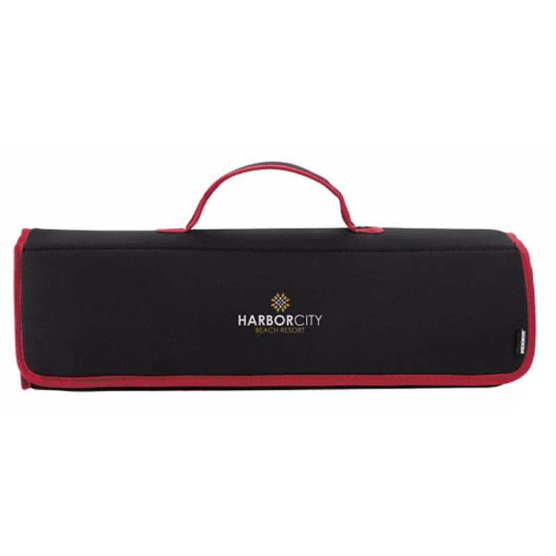 Print your custom logo on the Koozie Black/Red Kamp 5-Piece BBQ Set and make it the perfect employee gift for your team - the personalized set can even be added to your company's new employee welcome gift. Step up every outdoor barbeque with the help of the stainless steel tools included in the set - the case where the tools are stored also features a clear pocket for seasonings, making the set your ideal barbeque buddy.